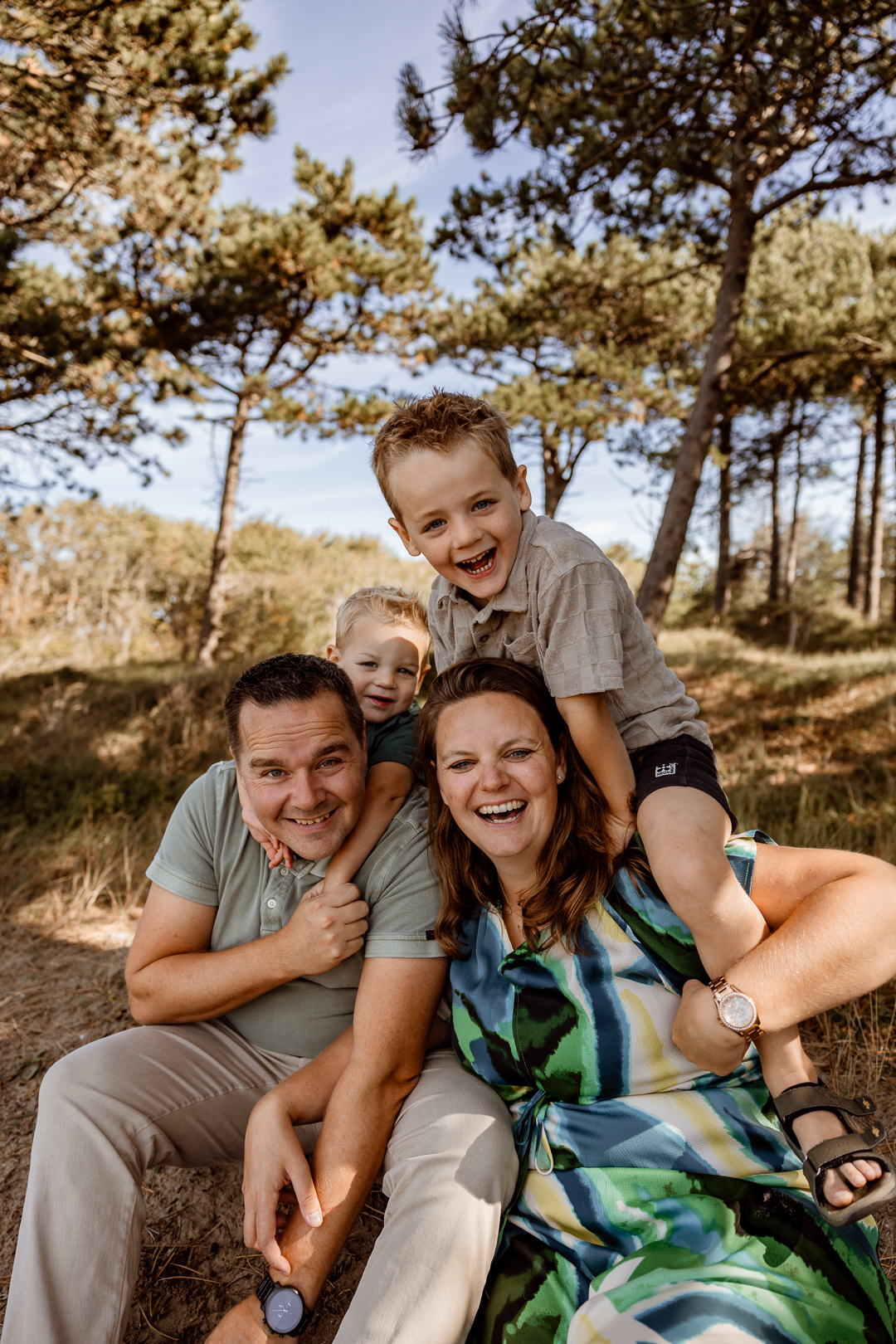Tijdens de shoot geef ik leuke opdrachtjes om leuke momenten te creëren, maar ik volg ook wat de kinderen doen. Ik kijk waar ze zich over verwonderen, hoe ze de omgeving ontdekken, en betrek jullie daar ook bij. Zo ontstaan natuurlijke momenten, terwijl ik de mooiste momenten en de verschillende combinaties vastleg. Een ontspannen en gezellige sessie waarin jullie gezin echt centraal staat.